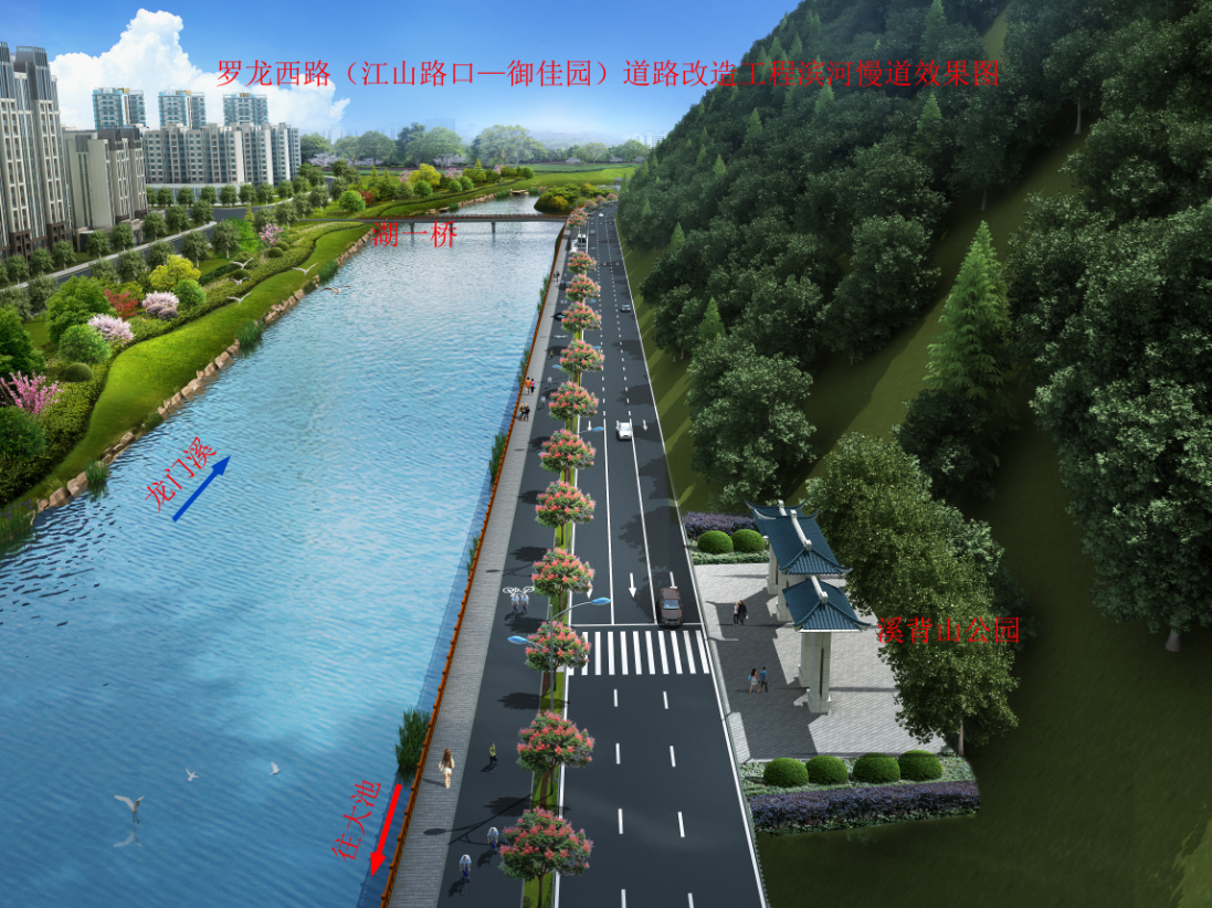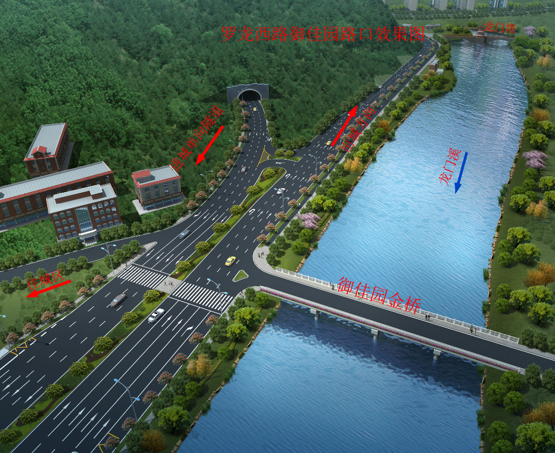 羅龍西路是連接龍巖西高速出入口與中心城市的唯一通道,其規(guī)劃改造范圍從紅竹山橋至御佳園路口,全長3855米,計(jì)劃將原道路拓寬至40米,實(shí)行雙向六車道,兩旁設(shè)2.5米非機(jī)動車道,并在湖二橋路口以東設(shè)640米入城單向三車道隧道連接至御佳園路口,原羅龍西路湖二橋至御佳園段將調(diào)整為出城單向車道。